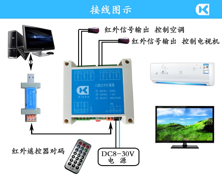 八路紅外擴展器 八路獨立通道 中控紅外擴展 智能狗編程